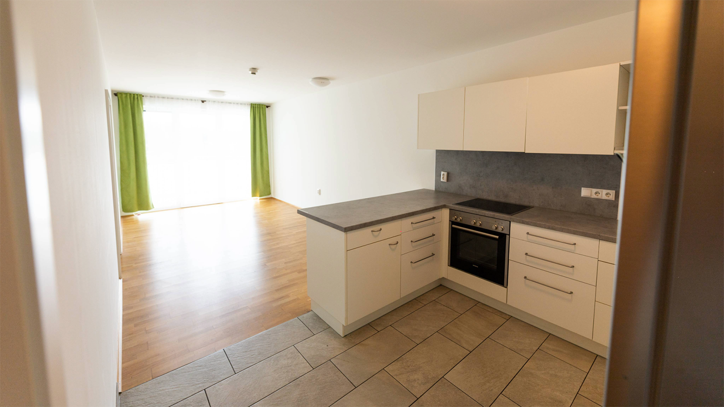 Die 12 barrierefreien Wohnungen eigenen sich für Einzelpersonen und Paare. Jede Wohnung verfügt über eine Wohnküche, ein Schlafzimmer, einen Vorraum, ein Badezimmer mit WC, ein Kellerabteil sowie einen Balkon oder eine Terrasse. Ein überdachter PKW-Stellplatz kann auf Wunsch angemietet werden.